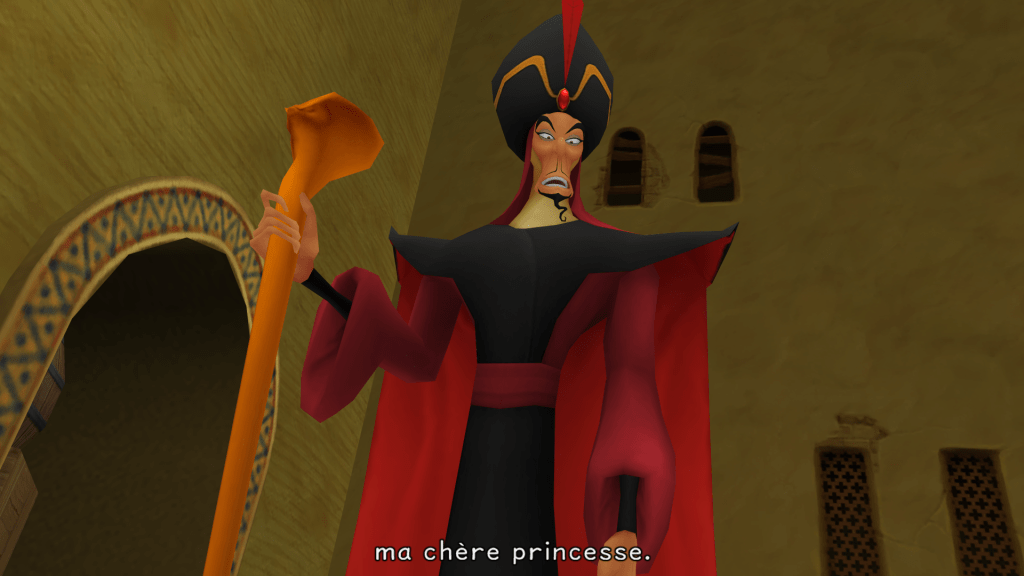 KH fait en sorte de reproduire le cours des évènements de chacun des longs-métrages tout en y apportant une touche supplémentaire dont vous êtes directement la cause. Vous n’avez rien à faire ici et les personnages vous le feront parfois comprendre.