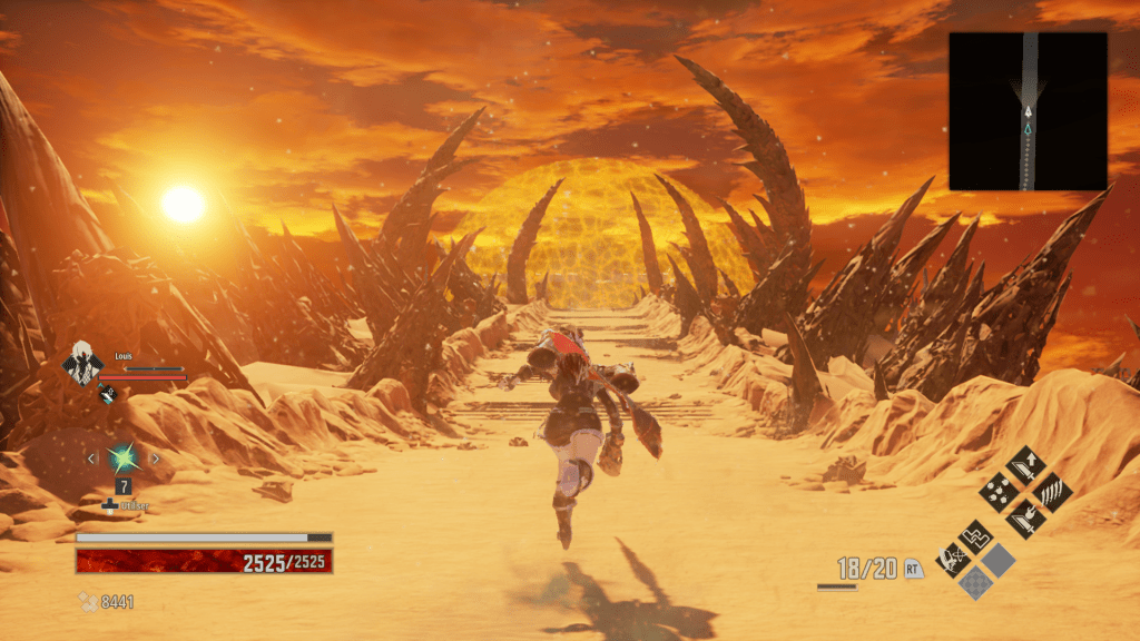Sur ces deux extraits, on peut s’apercevoir que le style du jeu est assez dynamique et que je prends super cher. On observe aussi que je lance des attaques de feu avec la jauge sur le côté à droite qui se nomme « jauge d’ichor ».