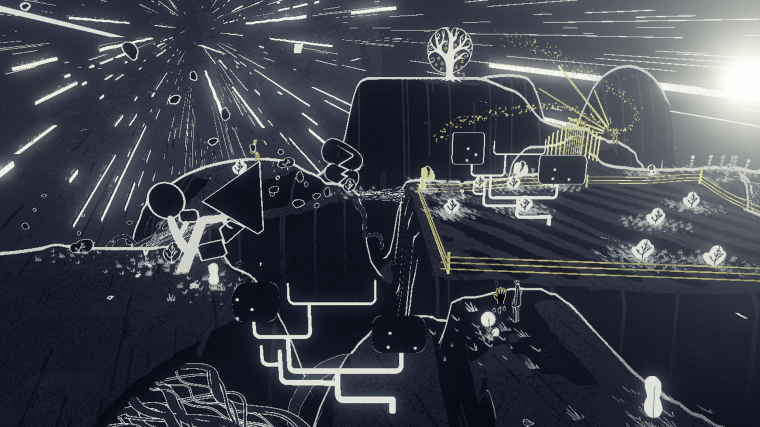 Ainsi, en me lançant dans cette aventure, je n’avais pas la moindre idée de ce que j’allais devoir faire ou même des thématiques que le jeu allait traiter. Minimaliste au possible pour les explications du scénario, il est assez difficile de comprendre le jeu. Il n’y a quasi ni dialogue ni texte, tout se comprend par le gameplay et les évènements qui se succèdent. Parfois, on pense comprendre et parfois on est totalement perdus. L’infiniment grand se confond avec l’infiniment petit, et en tant qu’individus anecdotiques de cette galaxie, il est ardu de percevoir l’ensemble de l’équation. Je me suis pourtant surpris à accepter de ne pas tout comprendre. Cela ne devenait pas un défaut imputable au jeu mais plutôt une vérité complexe à intérioriser. Après tout, on joue avec la création du monde.