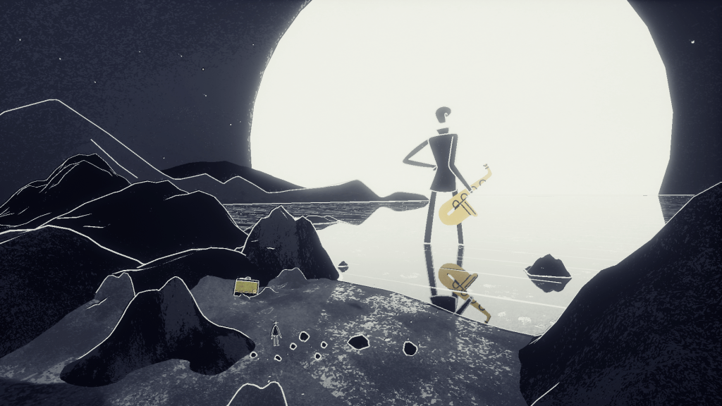 On peut le dire, la direction artistique de ce jeu est une pure réussite. C’est beau et c’est surtout inhabituel. Là où le cinéma a connu l’époque sans couleurs, où la BD connait le manga, le jeu vidéo n’a que très peu connu l’époque du noir et blanc. On retrouve des traces des couleurs verte et rouge, jaune avec Pac-Man sur borne d’arcade en 1977 alors que le jeu vidéo n’en était encore qu’à ses balbutiements (Pong ne date que de 1970). On ne peut donc pas vraiment dire que l’absence de couleur soit quelque chose de marqué dans le jeu vidéo. Par conséquent, avoir entre les mains une direction artistique se reposant sur le blanc et le noir provoque un effet séduisant, ironiquement rétro. On retrouve bien sûr d’autres jeux qui s’amusent avec ce type de DA comme Minit, Night Call et dans une moindre mesure Return of the Obra Dinn. De plus, on utilise généralement le noir et le blanc pour montrer un évènement antérieur comme dans un flashback. Il n’est pas rare de voir un jeu perdre ses couleurs dans le cadre du récit pour affirmer au joueur un changement de temporalité.