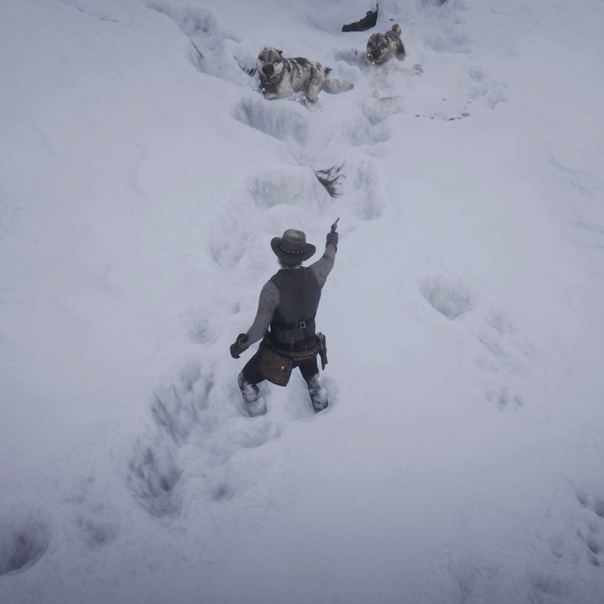Je parlais plus haut de finitude. Cette dernière se limite parfois au cas particulier de certains animaux « uniques », c’est-à-dire d’individus spécifiques ne pouvant être tués qu’une seule fois et ne réapparaissant qu’après avoir commencé une nouvelle partie. Afin de relever les « Défis Maître Chasseur » de Red Dead Redemption, les joueur.euse·s doivent tuer deux animaux considérés comme légendaires et dont le statut unique est renforcé par le fait que, contrairement à la faune aléatoire habituelle, ils possèdent chacun un nom : Khan le jaguar et Lobo le loup. À l’opposé de toute éthique environnementale de préservation, la logique ludique de la chasse comme sport de sang considère la singularité de toute créature comme une incitation première à la tuer : plus l’animal est rare, plus il devient désirable pour le chasseur.